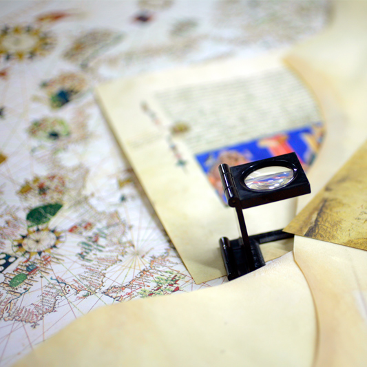 La elección del soporte que ha de contener tanta belleza y color nos obliga a una búsqueda constante de las innovaciones tecnológicas más vanguardistas para reproducir con exactitud, el tacto, ondulación y carteo de pergaminos y vitelas auténticas.