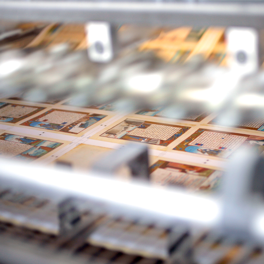 Uno de los procesos más delicado, es la reproducción exacta de cada uno de los colores que se usaron en estos bellos manuscritos. Para ello, usamos los medios tecnológicos más modernos para conseguir una corrección de color lo más exacta, comparando in situ las pruebas de color con el original, pasando después a la impresión de la obra con máquinas de hasta diez colores y programas tan innovadores como el estocástico, necesario e imprescindible para poder afrontar con éxito el desafío de la impresión de estos facsímiles.