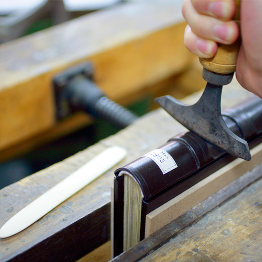 La elaboración de la encuadernación de nuestros facsímiles tiene toda la vivencia y sabiduría de los artesanos que en su día y momento encuadernaron los códices que hoy nosotros reproducimos, de manera totalmente artesanal, empleando para ello las mismas técnicas, cáñamos, cosidos, distribuciones de cuartetas, estampaciones del pan de oro, pieles, pergaminos, etc... y todos aquellos elementos, por mínimos que éstos sean, que intervinieron en la encuadernación de los manuscritos, creando con todo ello esa maravillosa sensación, que nos sobrecoge y sublima, de tener en nuestras manos un viejo códice medieval, con su proceso de envejecimiento, tanto en sus páginas interiores como en sus cubiertas.